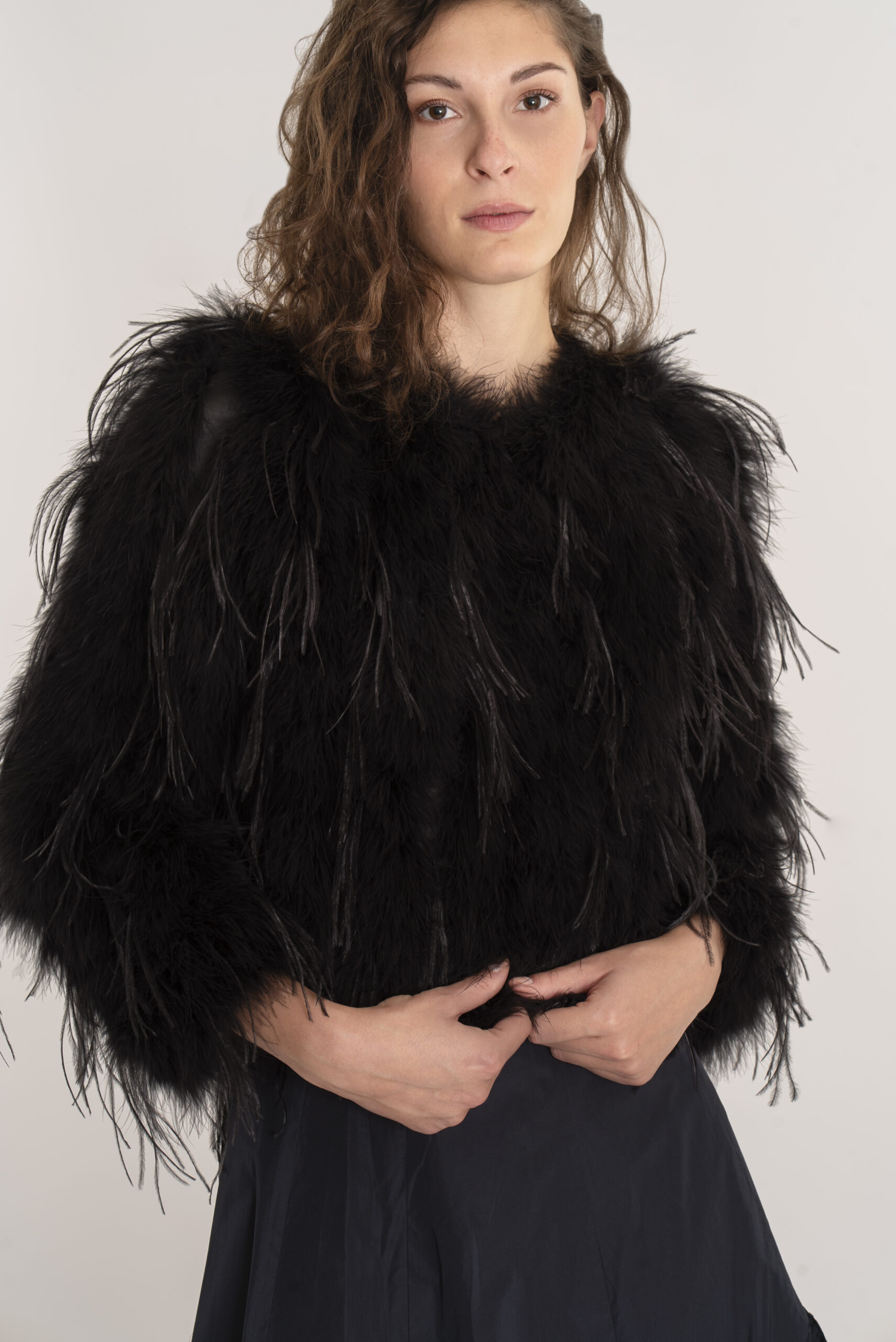 Faux fur with ostrich feathers.